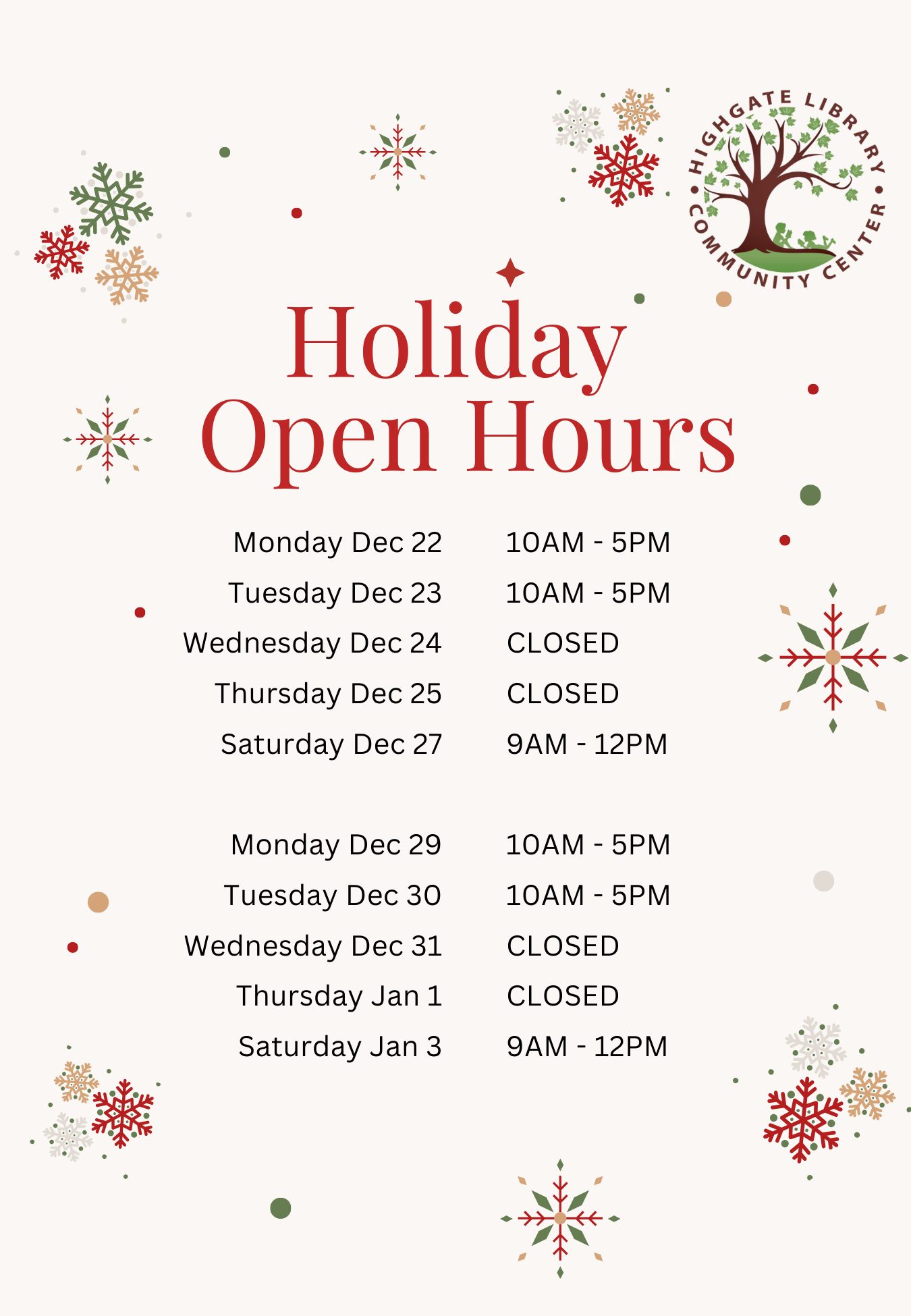 - If you have any questions, please email us: librarian@highgatevt.org or call us at 802-868-3970.