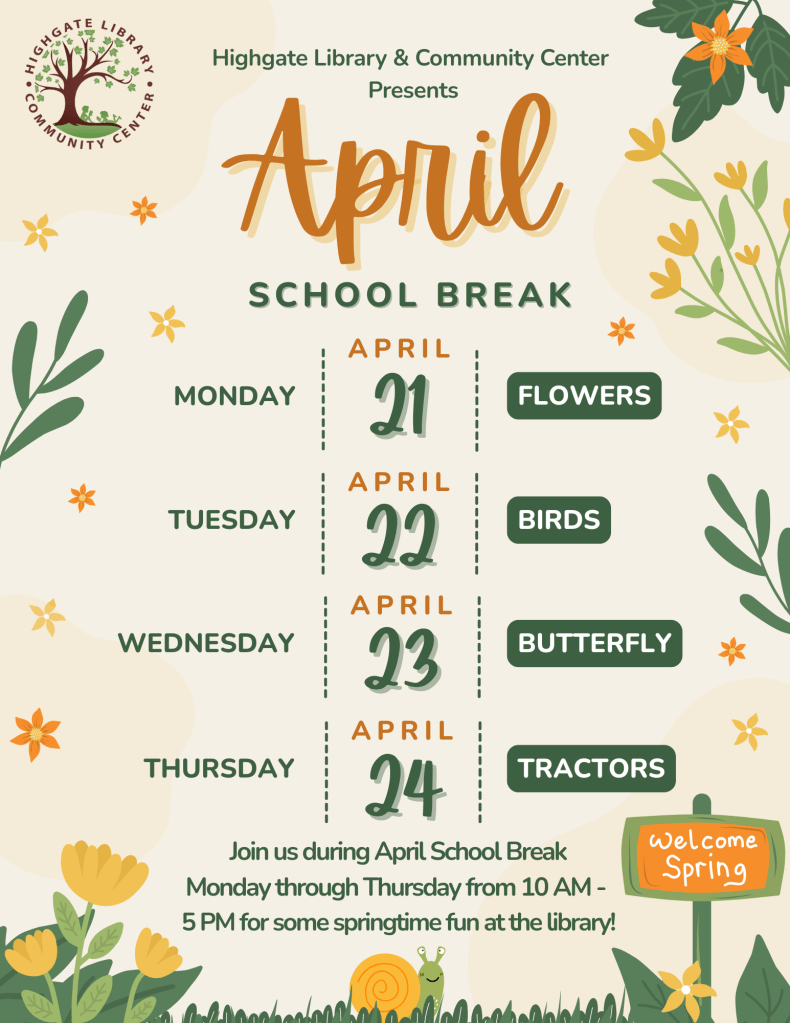 April School Break Share this: Click to share on Facebook (Opens in new window) Facebook Click to email a link to a friend (Opens in new window) Email